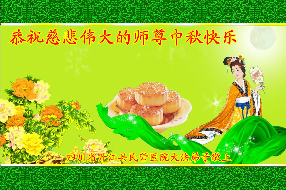 【明慧网二零一五年九月二十五日】 四川省达州市开江县民营医院大法弟子恭祝慈悲伟大的师尊中秋快乐!