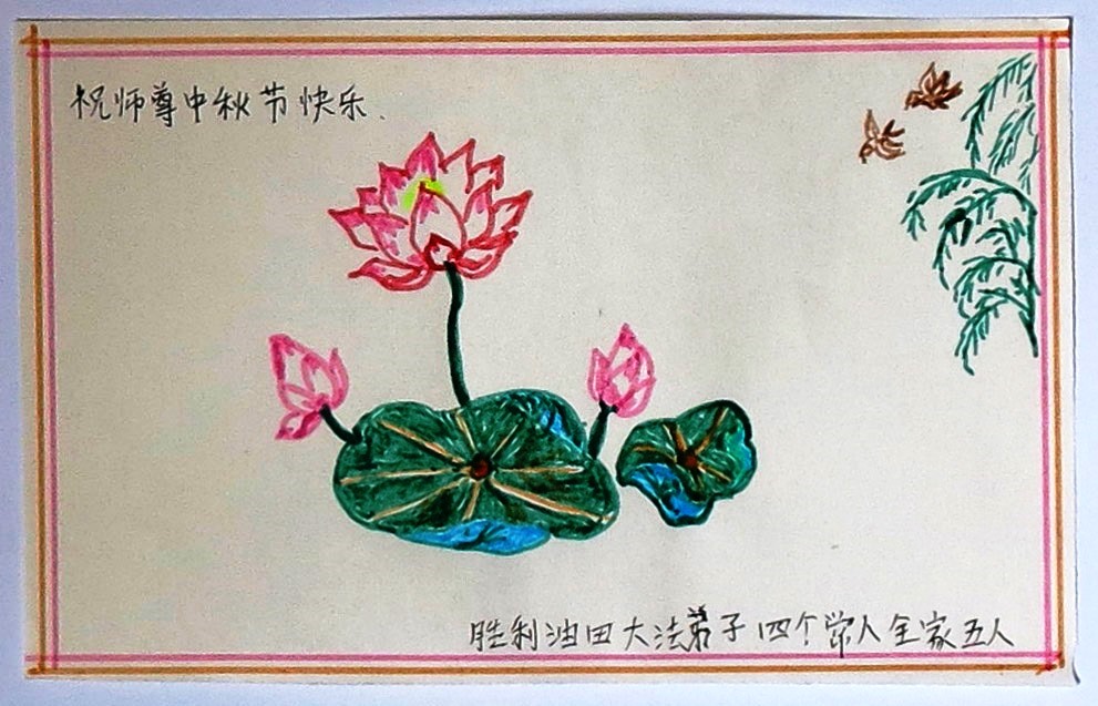 黑龙江省大庆油田大法弟子一家祖孙三代恭祝师尊中秋快乐!