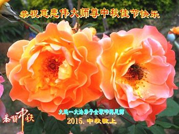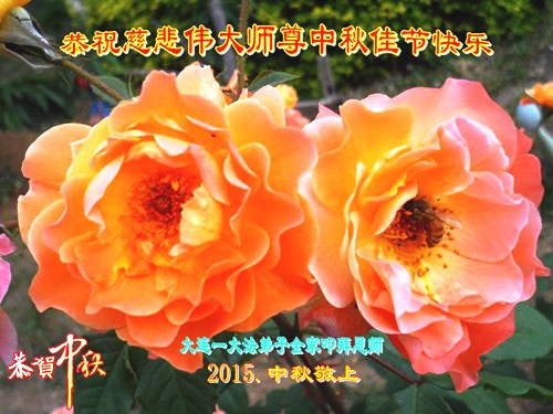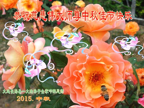 师父您好,您辛苦了,您为弟子操碎了心,在这普天同庆,万家团圆的节日里,弟子很想您,感恩师父的慈悲苦度,感恩师父的一路呵护与搀扶,伴我们走过风风雨雨、漫漫长夜。 佛恩浩荡,师恩难报,师父我们一定精進如初,不负誓约,做好三件事。跪拜师父中秋快乐! 大连夫妻俩大法弟子 2015年9月18日 辽宁大连泉水大法弟子恭祝慈悲伟大的师尊中秋节快乐!