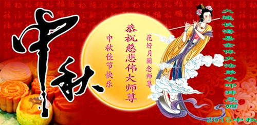 时值中秋佳节之际,我们小组全体同修倍加想念慈悲伟大的师父,我们每走一步都离不开师父的慈悲呵护,我们会更加严格要求自己,多学法,学好法,踏踏实实修炼,不断在法中归正自己,多救众生,让师父欣慰! 辽宁省大连市金州区大法老弟子恭祝师尊中秋快乐!