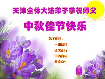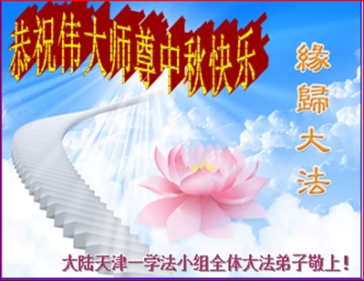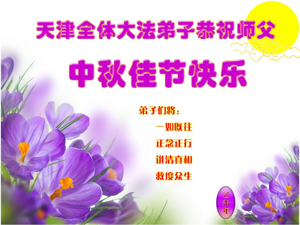【明慧网二零一五年九月二十五日】 天津西青大法弟子恭祝师父中秋节快乐!