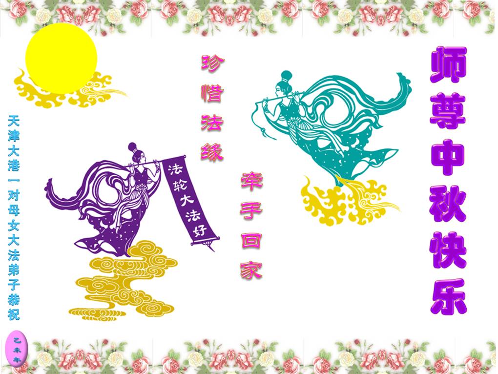 天津大港一对母女大法弟子恭祝师尊中秋快乐!