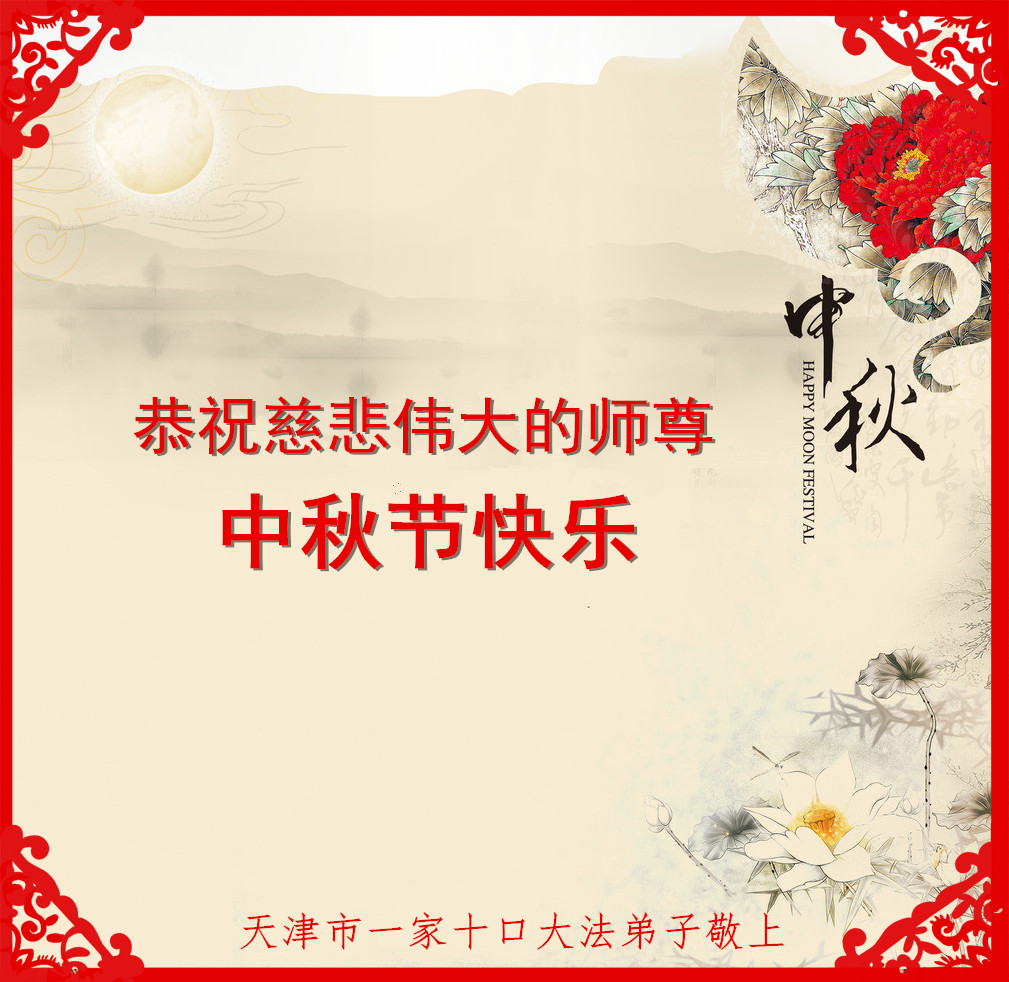 请师父放心,我们一定紧跟正法進程,全力救人,圆满师还。 天津大法弟子恭祝慈悲伟大的师尊中秋节快乐!