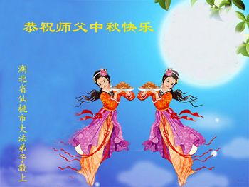 每逢佳节倍师亲,在中秋节来临之前,我们遥祝师父中秋快乐!我们一定共同学好法,在法上提高,推动诉江大潮多救人,完成大法弟子的使命。 武汉硚口区一学法小组和湖北母女二人 湖北省荆州市公安县一大法弟子祝师尊中秋节快乐!