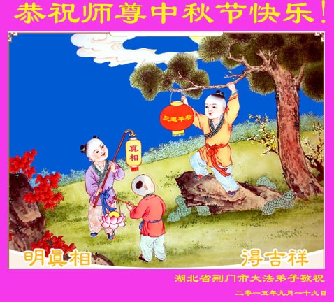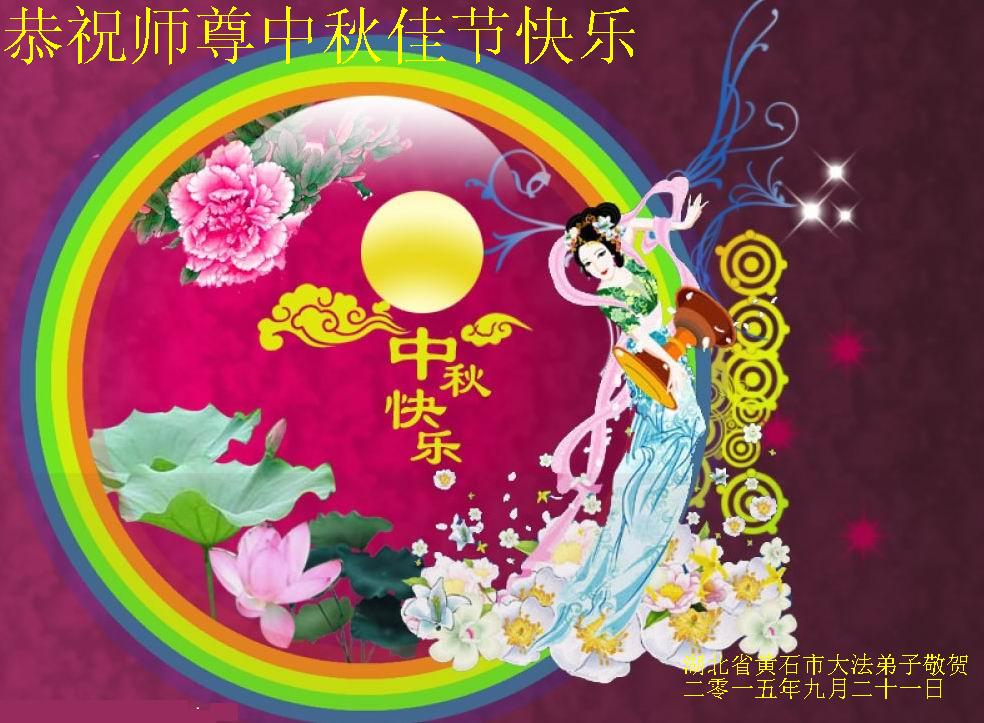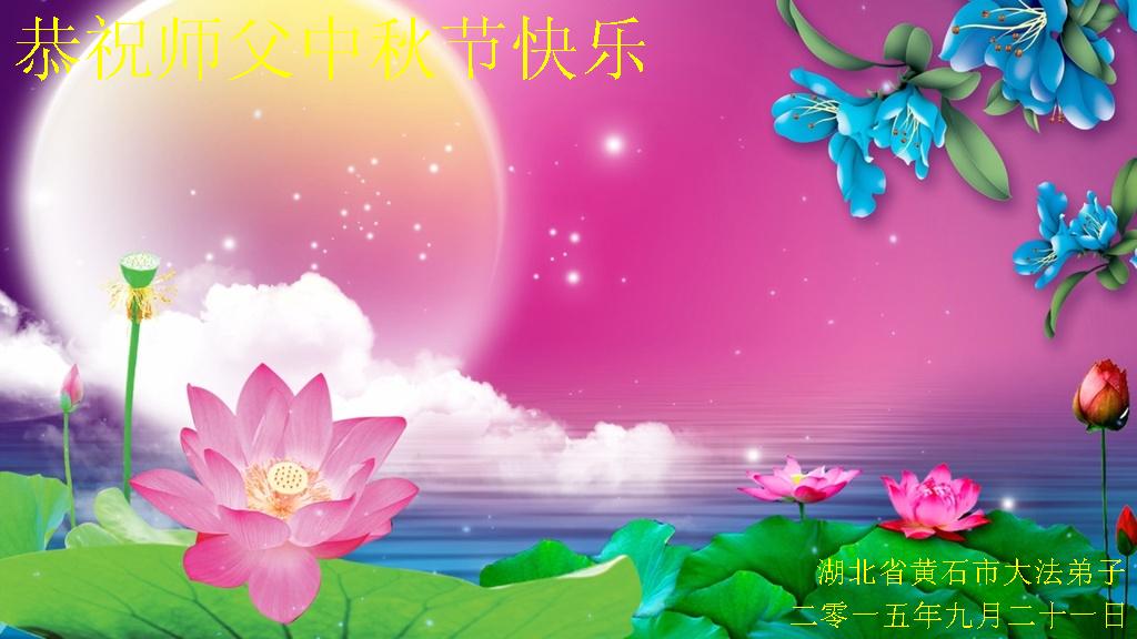 【明慧网二零一五年九月二十五日】 湖北武汉市东西湖区全体大法弟子恭祝师尊中秋快乐!
