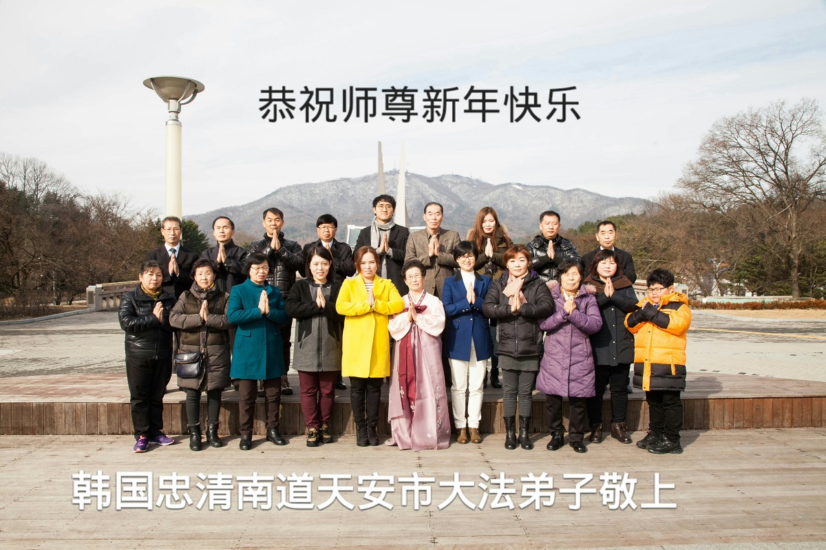 祝 :伟大的师尊新年好!弟子努力做好三件事 ,少让师父操心,是我们内心的愿望。叩首! 韩国安山市全体大法弟子恭祝慈悲伟大的师尊新年快乐!