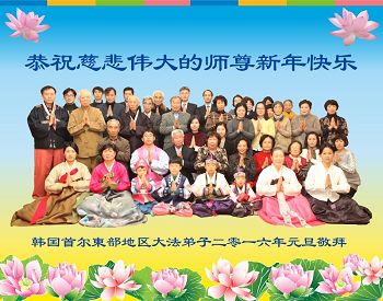韩国首尔北部地区大法弟子二零一六年元旦敬拜 韩国讲真相小组大法弟子恭祝师尊新年好!