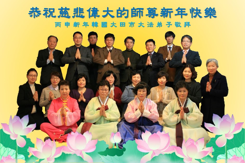 韩国釜山地区大法弟子敬拜 韩国大田市大法弟子恭祝慈悲伟大的师尊新年快乐!