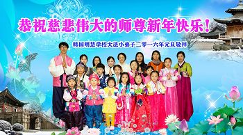 丙申新年韩国大田市大法弟子敬拜 韩国明慧学校大法小弟子恭祝慈悲伟大的师尊新年快乐!