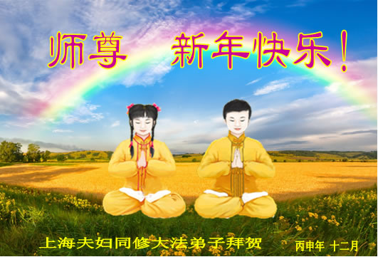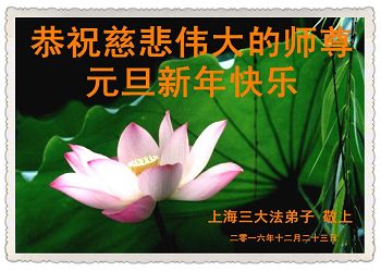 上海三大法弟子及全家恭祝慈悲伟大的师尊元旦新年快乐!