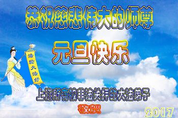 恭祝师父新年好!恭祝师父2017元旦快乐!师父辛苦了!上海大法弟子叩拜! 在上海打工的大法弟子全家和所有认识的同修叩拜师尊,恭祝师尊新年快乐!