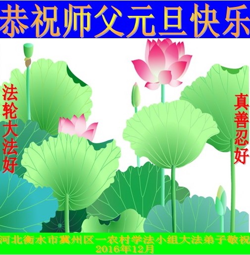 师父您好!师父辛苦了!在2017元旦即将来临之际,弟子向师父略表寸心及歉意,感谢师父十几年来对弟子的一路呵护,每当自己做不好时,都会觉的愧对师尊,师父!弟子知道自己的责任与使命,一定听师父的话,越最后越精進。师父谢谢您!双手合十! 河北石家庄地区农村的大法弟子恭祝慈悲伟大的师尊新年快乐!