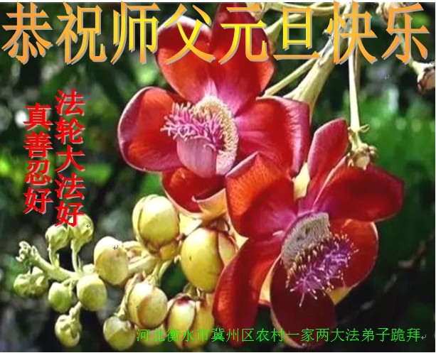 嫂嫂、姐妹、还有我们学法小组的(三个小组)全体同修、及我们的家人恭祝慈悲伟大的师尊元旦快乐!非常感谢师尊的救度洪恩! 慈悲伟大的师尊您好!慈悲伟大的师尊您好!我们都想念您!我们在师尊的慈悲呵护下,我们谨记师尊的教诲,修好自己,整体圆容、配合好,做好三件事,早日跟师父回家。 跪拜师尊 合十 山东淄博农村大法弟子祝师尊元旦快乐!