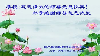 感恩师尊对弟子们的慈悲苦度,弟子深刻的感悟到没有师尊的无量慈悲就没有今天弟子们和众生的一切。感恩师尊! 河北邢台一农村大法弟子恭祝师尊元旦快乐!