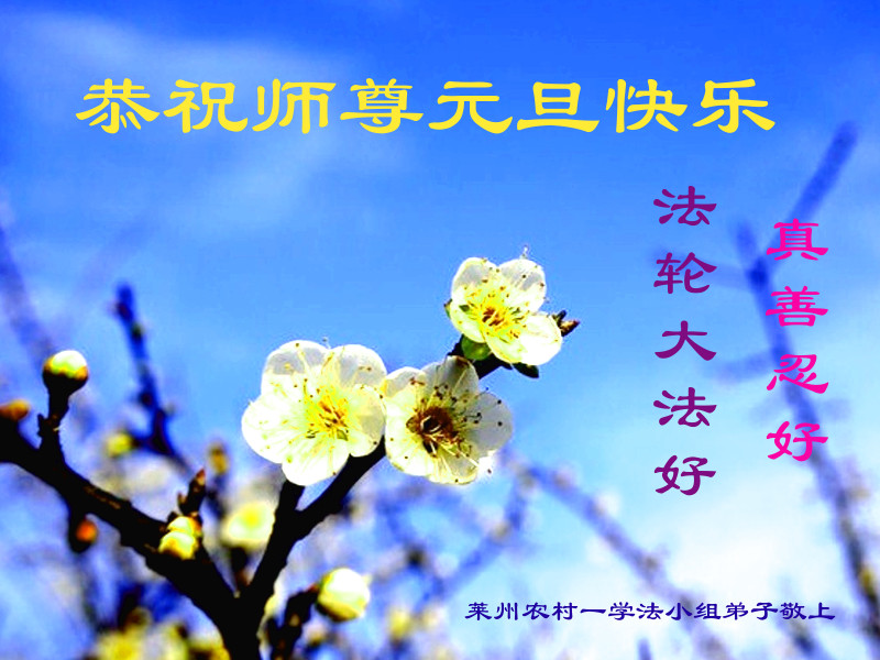 山东省烟台市莱州市农村一学法小组大法弟子恭祝师尊元旦快乐!
