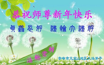 【明慧网二零一六年十二月二十九日】 内蒙古赤峰市元宝山区元宝山镇学法小组恭祝师尊新年快乐!