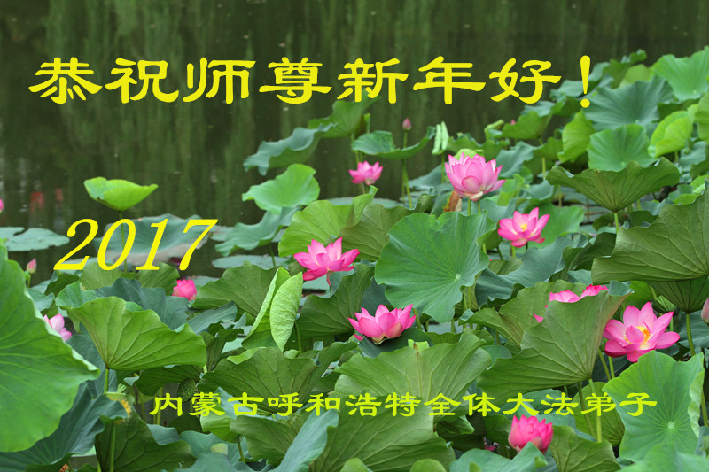 感谢师尊不离不弃、慈悲救度! 在新年里努力做好,不负师尊殷切期盼。 2016年12月23日 内蒙古呼和浩特全体大法弟子感恩师尊慈悲苦度,恭祝师尊新年快乐!