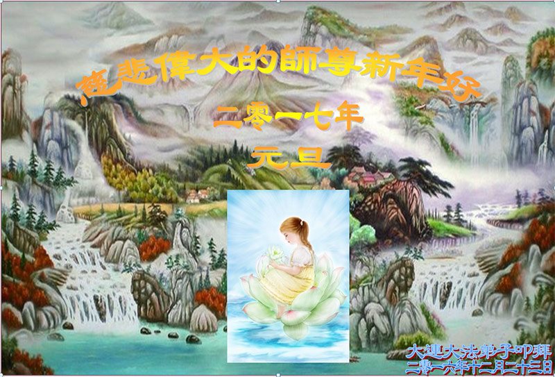 弟子深知师恩难报,唯有精進。再精進。圆容师父所要得。讲清真相,多救人,学好法,修好自己,圆满随师还。 辽宁省大连瓦房店市全体大法弟子恭祝伟大的师父二零一七年元旦快乐!