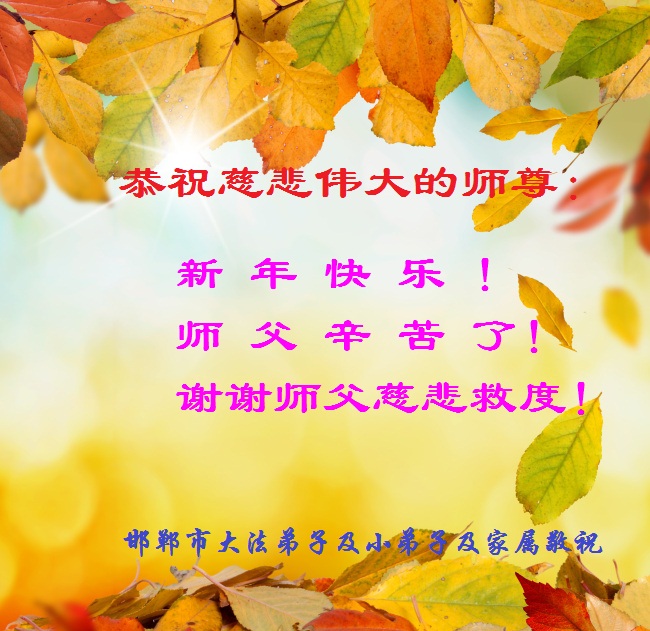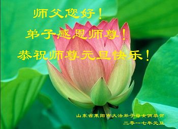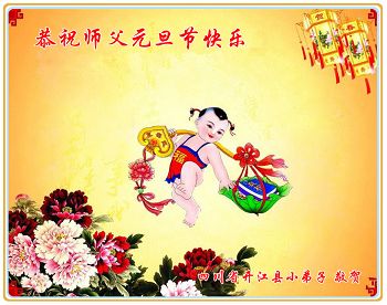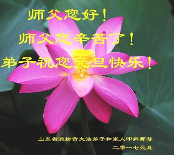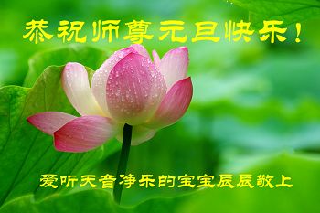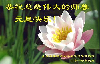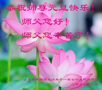 师父祝您元旦快乐!我一定好好学法。多谢师父的苦心安排,请师父加持弟子做好我应该做的。双手合十叩拜师父! 四川省德阳市广汉市一大法弟子与母亲,儿子同修及其家人衷心祝愿我们伟大慈悲的师父元旦快乐!