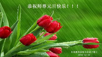 转眼之间新年到 兑现誓约争分秒 讲真相中修自己 放下执着修的高 越到最后越精進 三件事要均衡好 师尊师尊放宽心 法正人间弟子去报道 吉林省长春教育系统大法弟子恭祝师尊元旦快乐!