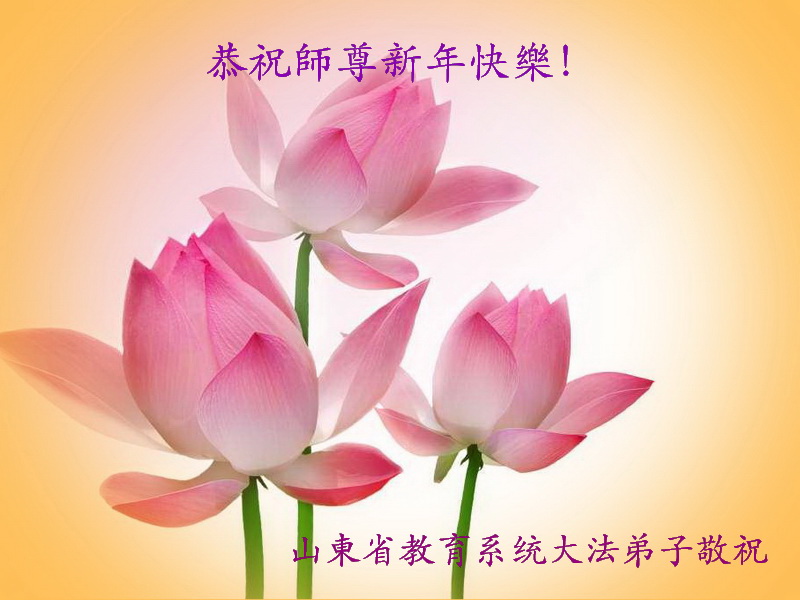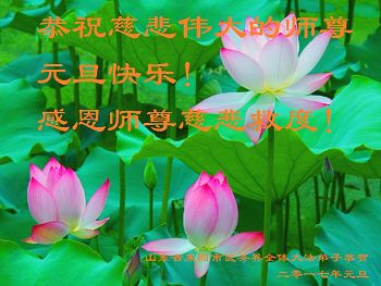 师父你太辛苦了!是师父您在人类遇到危难时,洪传宇宙大法,恩泽苍宇,挽救道德下滑的人类,拯救世人免于灾难,给人类带来了光明和希望。弟子们幸运得到这万古不遇的大法救度,同化真善忍,在法中不断的归正自己,洗净自己,身体健康了,生命升华了,在修炼中证实了大法的伟大,师尊的慈悲。弟子用尽人间的语音也表达不尽对师尊的感恩,借新年到来之际,道一声“师父,谢谢您!我们会珍惜师父用巨大的承受为我们留下的这些时间,好好学法,修好自己,去除各种各样的人心,用各种方式多救众生,在正法的最后阶段做好我们该做的,不负来世的使命。 山东青岛教育系统大法弟子恭祝师尊新年好!