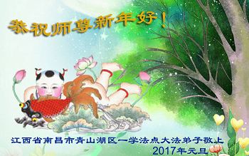 江西南昌县一学法小组大法弟子恭祝慈悲伟大的师尊元旦快乐!