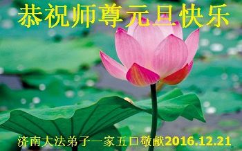 山东省济南大法弟子一家五口恭祝师尊元旦快乐!