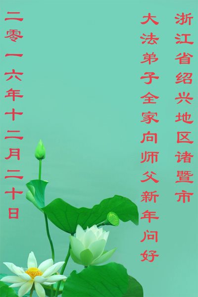 【明慧网二零一六年十二月二十九日】 浙江省温州市三位大法弟子祝师父新年快乐!