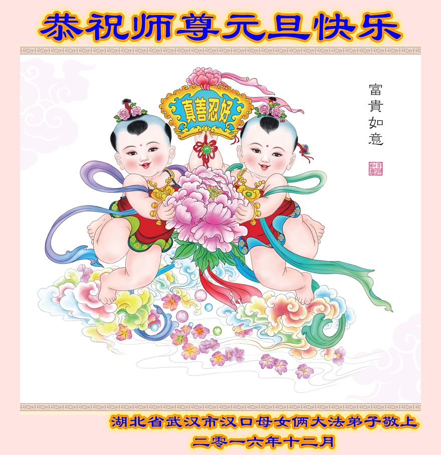 湖北省武汉市汉口母女俩大法弟子恭祝师尊元旦快乐!