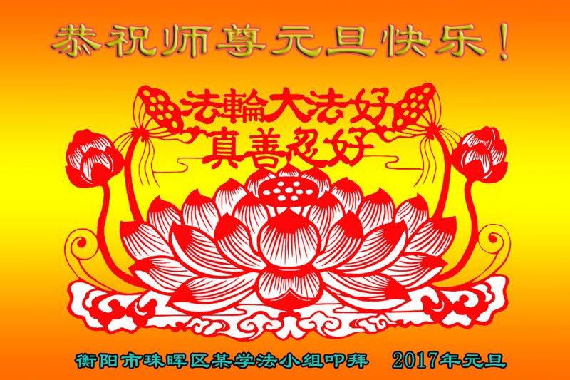 【明慧网二零一六年十二月二十九日】 湖南省衡阳市珠晖区某学法小组大法弟子恭祝师尊元旦快乐!