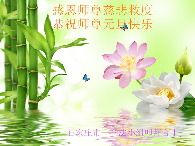 慈悲伟大的师尊元旦好!河北石家庄北二环一学法小组五人恭祝师尊新年快乐!我们在新的一年里,努力做好三件事,去掉为私的心、修去色心、修去惰性、做合格的正法时期大法弟子。叩拜师尊 河北省石家庄北二环一大法弟子恭祝慈悲伟大的师尊元旦好!