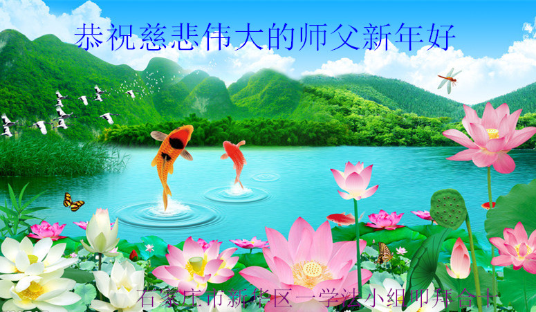 慈悲伟大的师父:您好!我们想念您,您辛苦了!恭祝师父新年快乐! 河北石家庄高新区一学法小组全体大法弟子敬上。 河北石家庄北站老年四人学法小组大法弟子恭祝慈悲伟大的师尊快乐!