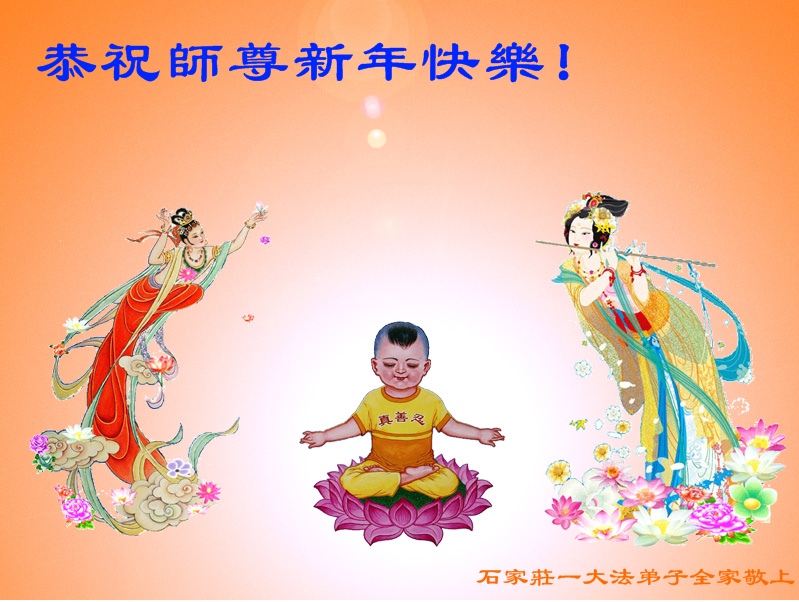 在过去的岁岁年年,日日月月的修炼路上。伟大的师父一直不弃不离的看护着,慈悲的护佑着我们一路走来。感恩之情无以言表。只能是向师父叩拜,叩拜! 河北石家庄一大法弟子全家恭祝师尊新年快乐!