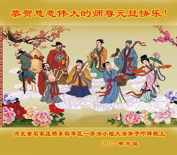 公历2017年元旦到来之际,恭祝慈悲伟大的师尊快乐! 师尊您辛苦了! 河北石家庄北站老年四人学法小组大法弟子叩拜 河北石家庄大法弟子姐妹二人祝师尊新年快乐!