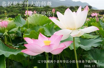 新年伊始!在此不精進的弟子向您问候!恭祝师尊新年快乐!再华丽的词汇也无法表达弟子对师尊的感恩之心,是师尊慈悲,时时看护我这个不争气的弟子,弟子唯有精進、精進、再精進,在法中归正自己做好三件事。 辽宁鞍山四个学法小组的大法弟子恭祝师尊新年快乐!20173
