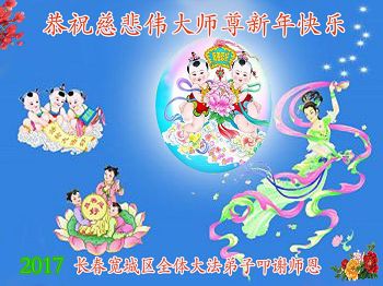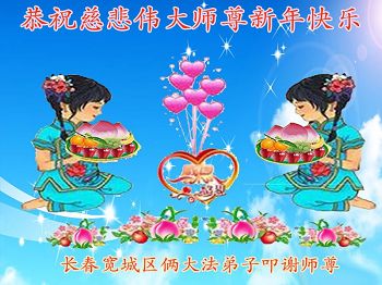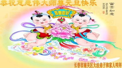 师尊辛苦了!在新的一年里,弟子一定听师尊的话,用心做好三件事,珍惜时间多救人。 吉林省长春市宽城区全体大法弟子叩谢师恩!恭祝慈悲伟大的师尊新年快乐!