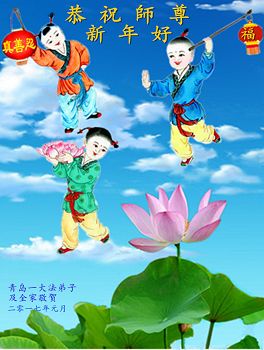 山东省青岛一大法弟子及全家恭祝慈悲伟大的师父新年好!