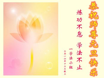 师父您好!师父辛苦了! 大陆一学法小组大法弟子恭祝师尊元旦快乐!