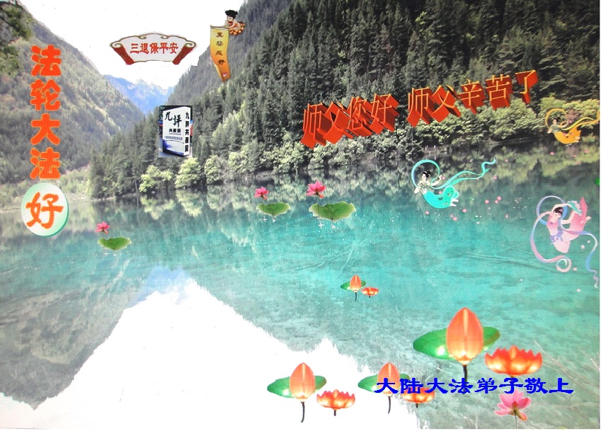 值此新年即将到来之际,弟子及家人祝师父新年快乐!叩谢师父救度之恩,用人世间的任何语言都表达不了师父的浩荡佛恩,弟子唯有精進实修,多救众生,让师父少一些操心,多一些欣慰。 大陆一大法弟子恭祝师父新年好!