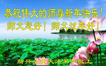 师父新年好! 弟子及家人向慈悲伟大的师父问好!师父新年好!师父您辛苦了! 大陆大法弟子敬上 新兴全家大法弟子恭祝伟大的师尊新年快乐!