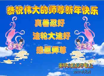 2017年元旦来临之际,弟子无法用语言表达对师尊慈悲救度之恩的感激。从得法20年修炼到今天。弟子每一步修炼都离不开师尊的看护与点悟。没有大法、没有师尊的看护弟子不可能走到今天。每次想起慈悲的师尊啊!感恩的泪水流下,只有实修自己才能对得起师尊的慈悲苦度。弟子一定珍惜师尊为弟子延续来的时间,学好法,修去人心和执着,遇事向内找,修自己,走好走正师尊给安排的路、完成自己的使命,跟师尊回家。 辽中全体大法弟子恭祝师尊新年快乐!