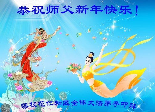四川省攀枝花一学法小组大法弟子恭祝慈悲伟大的师尊新年快乐!