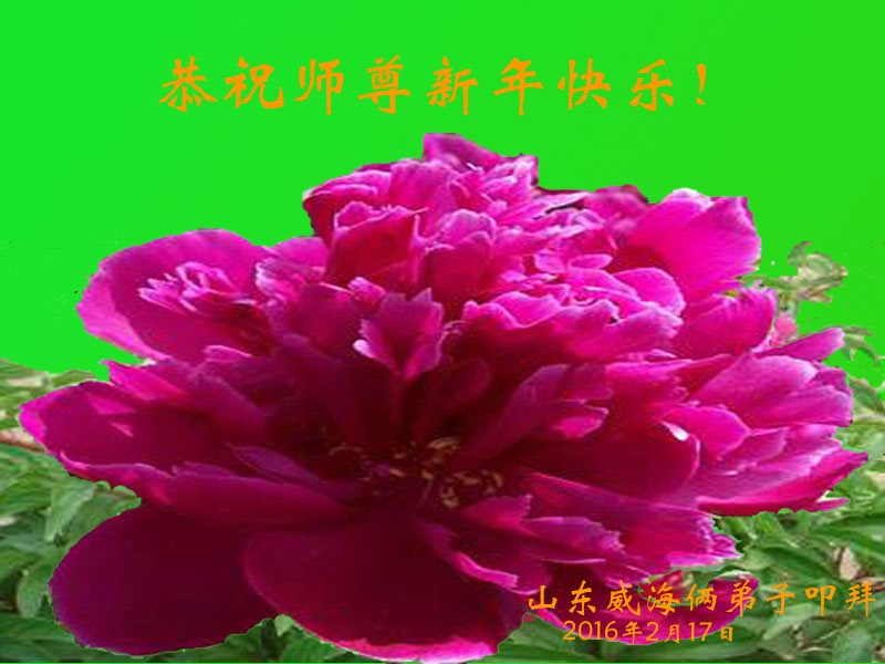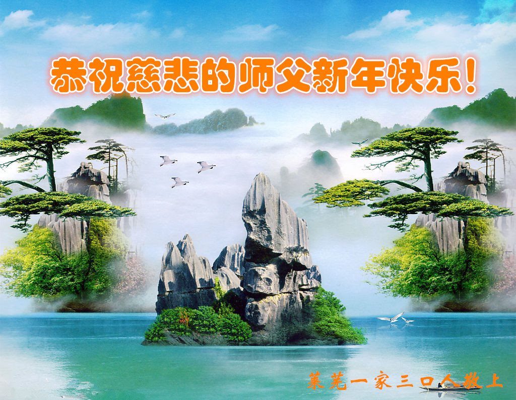 我们慈悲伟大的师父新年好! 在这辞旧迎新的喜庆日子里,我们想念师父。每逢佳节倍思亲,师父啊!我们想念您。我们怀着无比激动的心情:恭祝师父新年快乐!正法必成。我们无论走到哪里,哪里都是我们救人和弘扬法轮大法的主阵地。 我们一定要紧跟师父正法進程,修好自己多救人。感恩师父慈悲救众生救弟子,不辜负师父的慈悲救度,跟师父回家。 我们全家恭祝师父新年快乐! 山东省烟台市栖霞市全体大法弟子向师尊拜年!