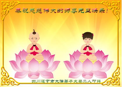 【明慧网二零一六年十二月二十九日】 四川遂宁市大法弟子夫妻二人恭祝慈悲伟大的师尊元旦快乐!