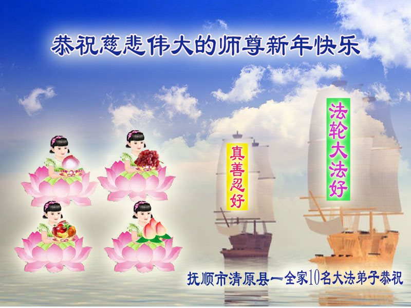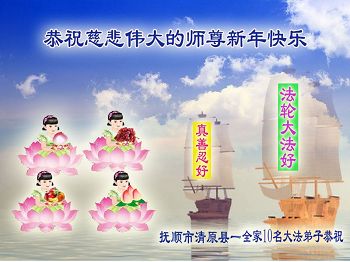 辽宁省抚顺市清原县四名大法弟子及四十位亲人恭祝师尊新年快乐!