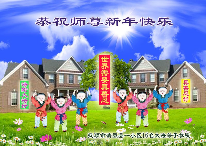 辽宁省抚顺市清原县一小区16名大法弟子恭祝师尊新年快乐!