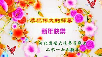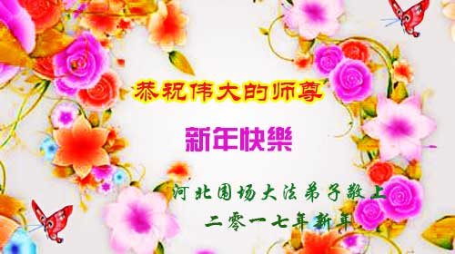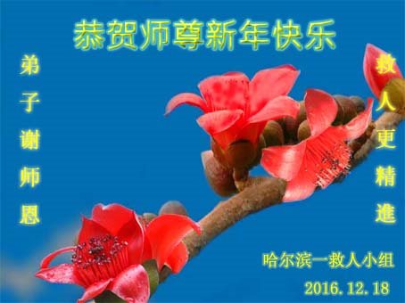 尊敬的师父您好: 转眼间二零一七年的新年即将到来,弟子值此恭祝师父新年快乐!万事如意! 回顾过去,弟子在师尊的慈悲呵护下走过了整整二十年,时时刻刻按师父的嘱托按法的要求向内找,修自己,救度众生,努力做好三件事。但和精進的同修比还相差很远。 今后不管修炼路还有多远,弟子要紧跟师父的正法進程,坚定实修,圆满随师还。 山东烟台市龙口市大法弟子 山东烟台市龙口市大法弟子恭祝师父新年快乐!