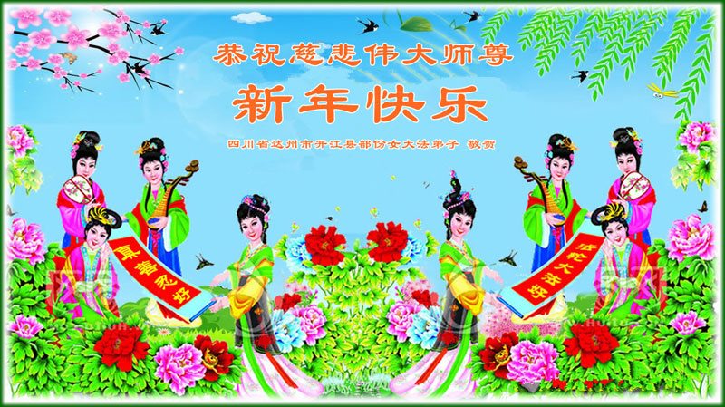 四川省达州市开江县部份女大法弟子恭祝慈悲伟大的师尊新年快乐!