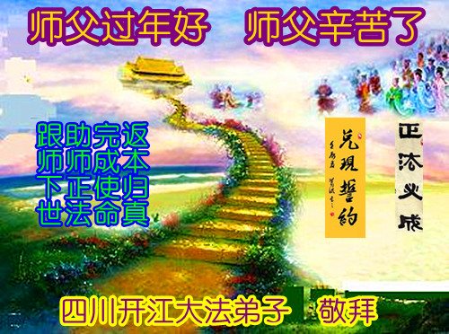 弟子一定紧跟师父正法進程,坚定的信师信法,做好“三件事”,跟随师父回家。 四川省资阳市雁江区大法弟子恭祝慈悲伟大的师父新年好!