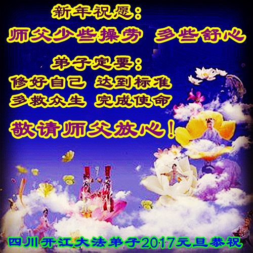 【明慧网二零一六年十二月三十日】 四川开江大法弟子恭祝师父元旦快乐!恭祝慈悲伟大的师尊新年好!